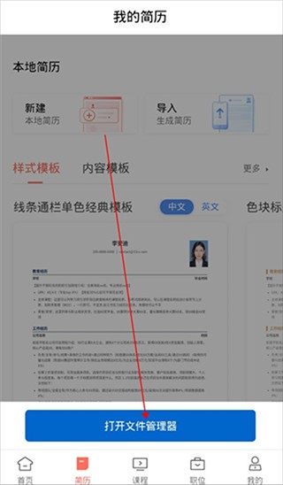 5、在文件管理器中找到想要导入的简历,点击,即可导入简历至职徒简历中。