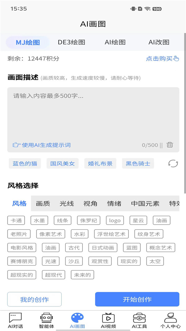 4、AI画图超级智能助手,画质真实精美,支持几十种风格输出,支持AI改图、扩图、修图、图生图等。