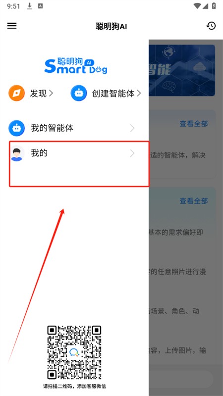 1、开启聪明狗ai软件,展开左侧栏,进入“我的”页面。