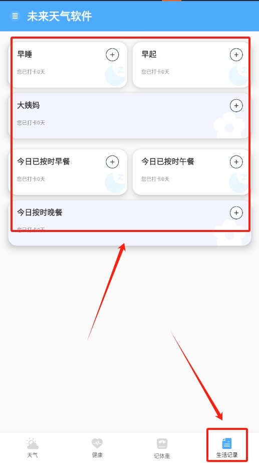 3、想记录生活作息也简单,在软件相应功能区域,按提示填入起床、入睡等时间即可。