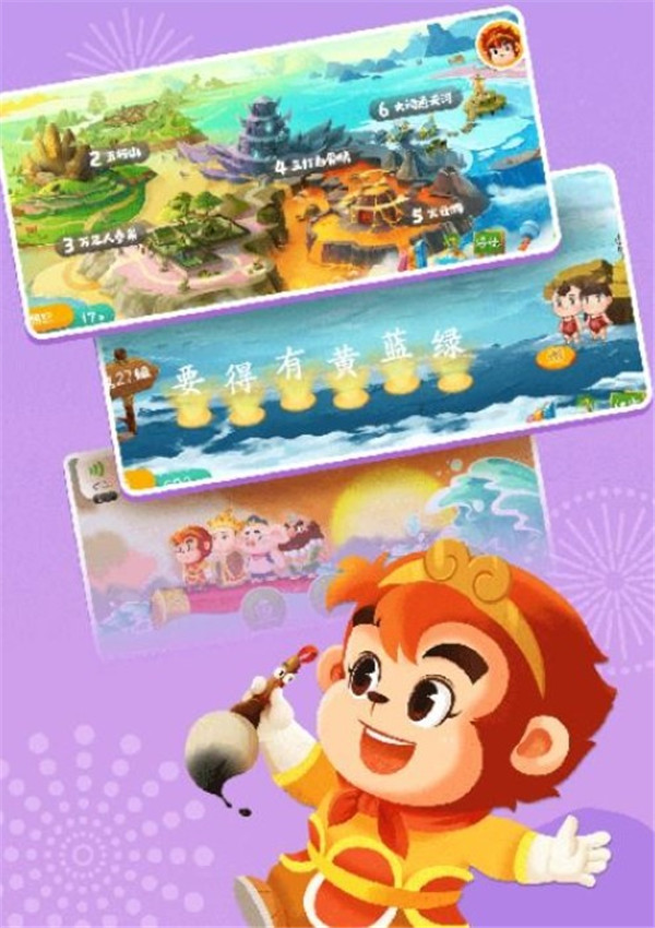 1、西游主题关卡 15个互动闯关场景,巧妙融入西游记经典情节,增添学习乐趣。