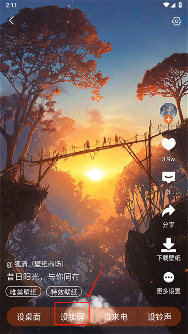 2、在这个动态壁纸上点击“设置为锁屏”选项,就能完成手机主题锁屏的设置。