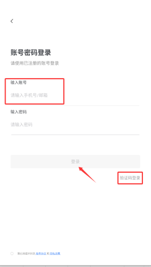 2、若选用账号登录方式,则需输入注册时填写的邮箱或手机号,以及与之对应的密码来完成验证步骤。