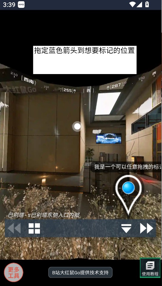 2、点击屏幕下方的箭头,就能快速切换并进入房间,之后就可以开始使用地图工具了。