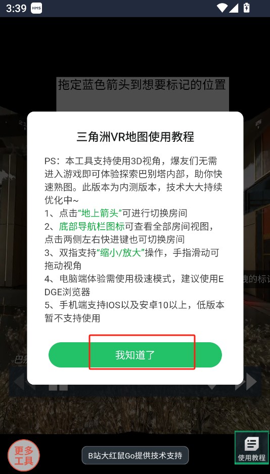 1、请使用本页面最新版的三角洲行动VR地图工具,操作完成后点击同意按钮以继续后续步骤。