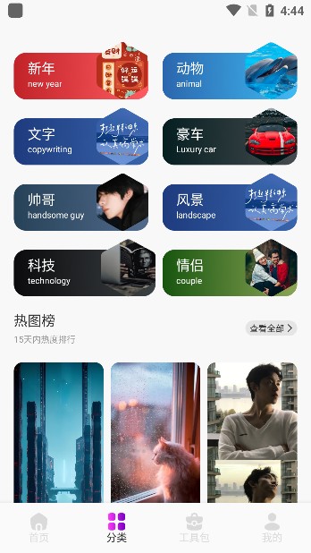 4、底部导航栏中,你也能点击进入壁纸分类页面,浏览更详细的壁纸类别。无论是风景、动漫,还是艺术、电影等,各类精美壁纸一应俱全,可满足不同用户的需求。