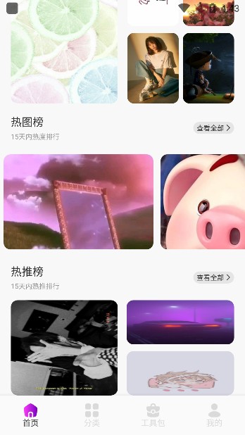 2、在主页面向下滑动,就能看到系统推荐的热门壁纸榜单。这里汇集了各式各样风格的壁纸,涵盖最新、最火的资源,助力你第一时间把握潮流趋势。