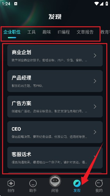 3、用户可依据自身需求自行选择,如图中所呈现的,便是商业企划制作的智能对话窗口。