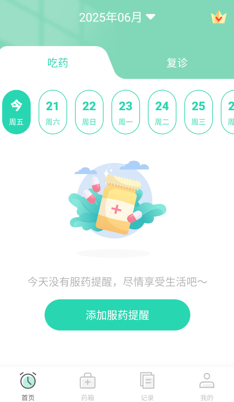 药准时管家帮助用户做好吃药管理,提供优质用药服务。尤其适合记性差的人,可设置每日吃药提醒,还能设定药物服用剂量,每日打卡,让用户再也不会忘记吃药,轻松养成良好用药习惯。