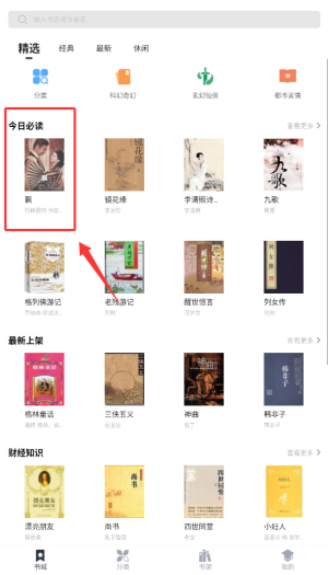 1、进入藏书阁后,在首页推荐或分类书库中浏览,选择感兴趣的小说作品