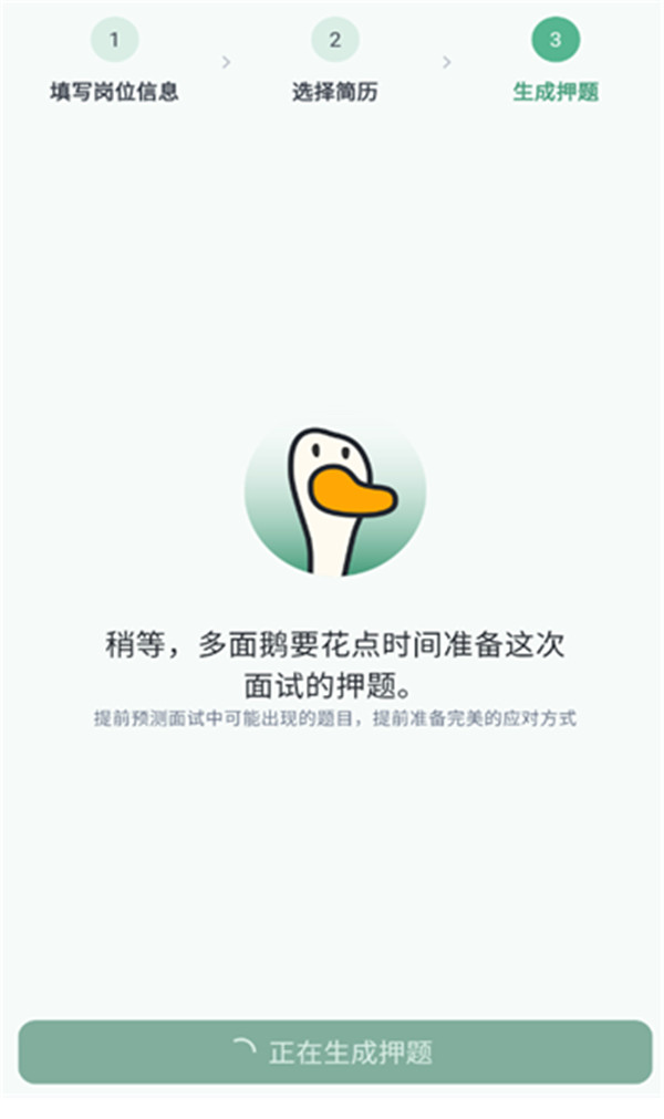 多面鹅(模拟面试工具)是一款智能面试求职辅助软件,具备AI模拟面试、简历制作、问题解析等功能。用户使用多面鹅OfferGoose后,可将个人信息上传至平台,智能助手会依据岗位需求给出个性化面试指导,帮助用户高效备战求职,从容应对HR的提问。