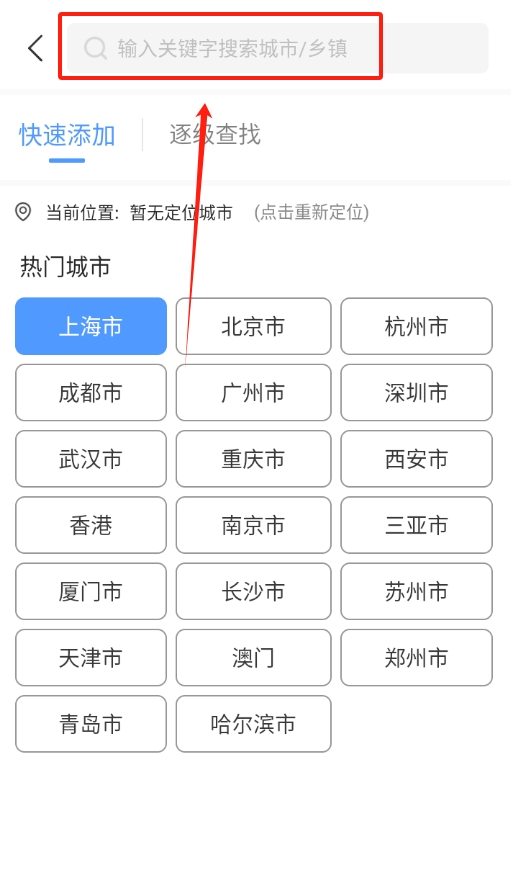 3、在搜索框里输入城市名字,输完点确定,这个城市的天气就加到你的列表里了。