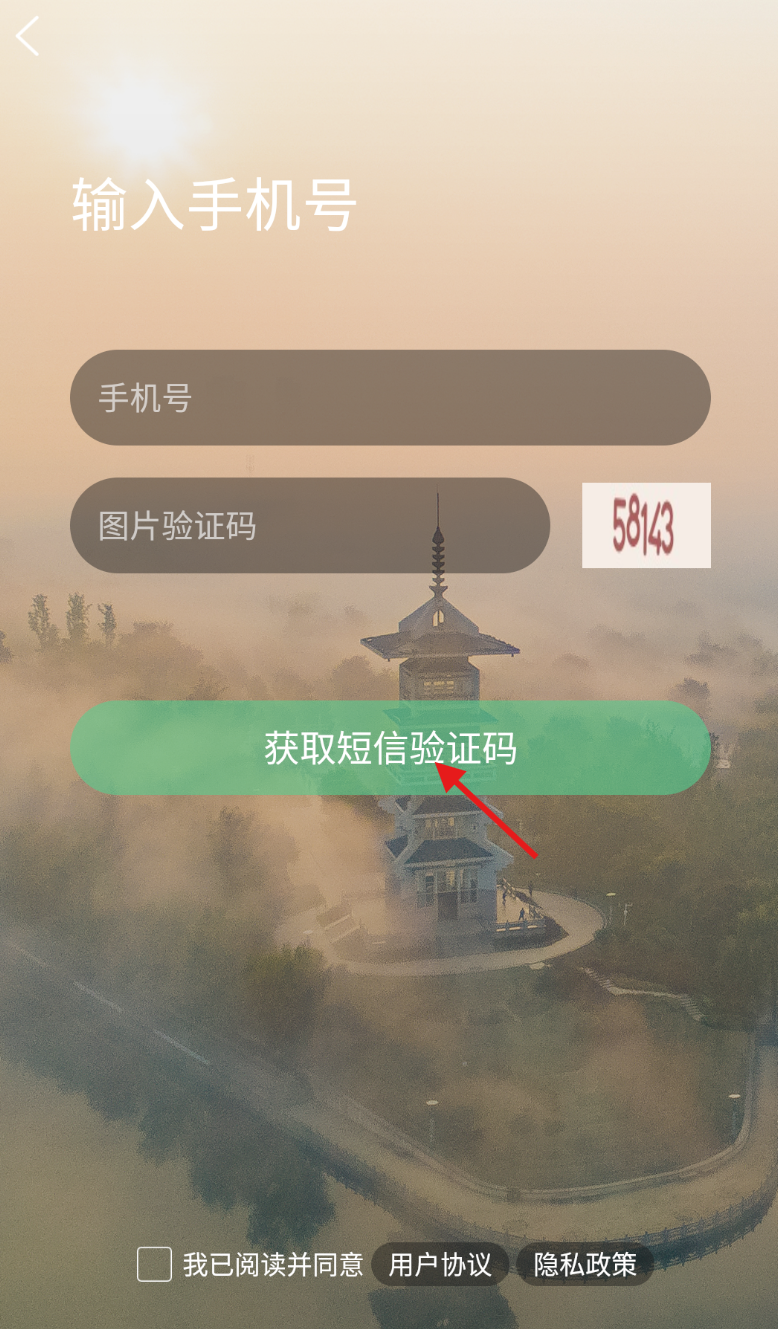 3、在注册界面输入手机号和图片验证码,点击获取短信验证码后完成注册。