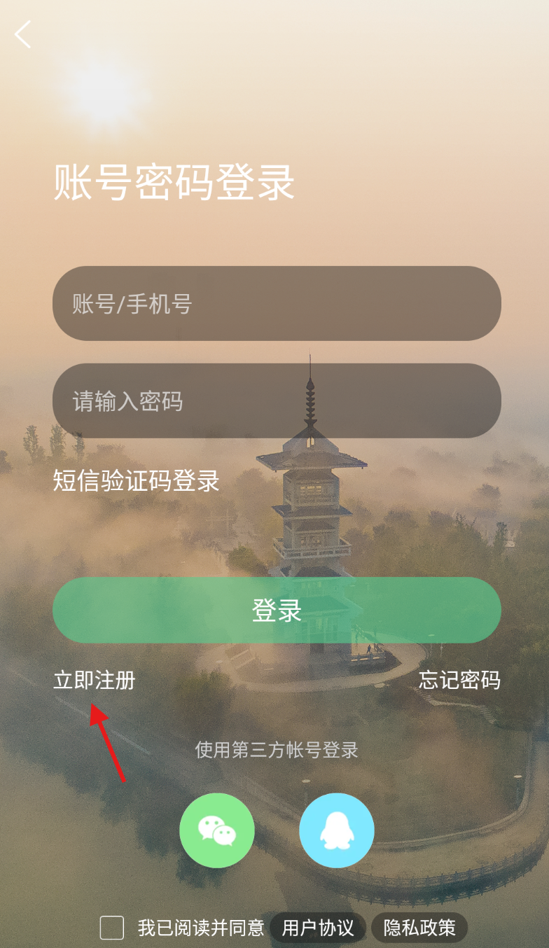 2、进入登录页面后,点击页面上的 “立即注册” 按钮,跳转至注册界面。