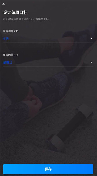 3、在设定中选择每周训练的天数,还能决定一周从哪天开始,灵活安排你的健身时间。