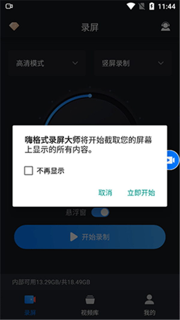 3.这款软件的操作十分简便,仅需一键式操作就能启动录屏功能。