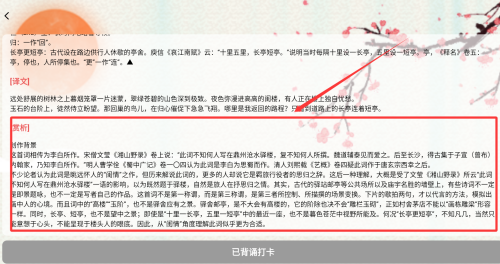 2、借助主题分类功能,去探索写景、节日、节气等专题的诗词,再结合注释与译文,来把握作品的精髓。
