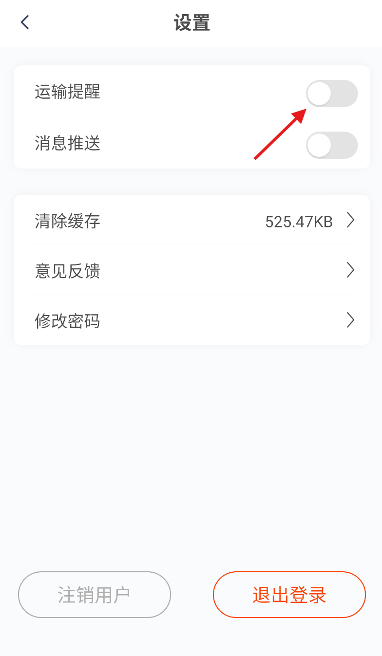 3、进入设置界面后,找到位于首行的“运输提醒”选项,点击该选项旁边的开关按钮,就能开启运输提醒功能。