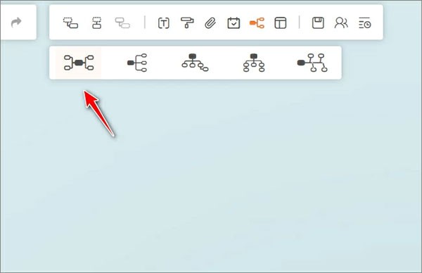 3、点击页面顶部工具栏里的“布局”选项,把“思维导图”选定为导图的结构形式。