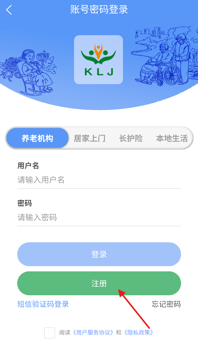 3、跳转至登录界面,仔细查看界面功能区域,点击醒目的 “注册” 标识。