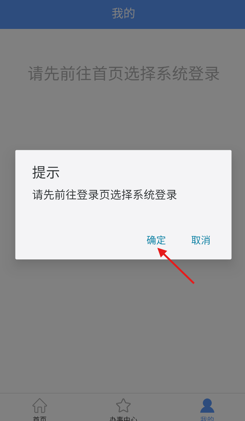 2、进入 “我的” 页面后,耐心等待系统提示弹出,随后点击确认按钮。