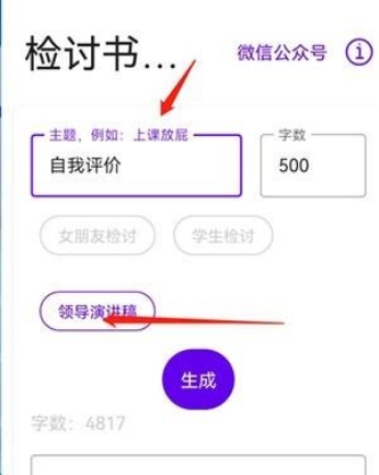 1、当用户进入“写锤子检讨书”功能后,能够根据自身需求自由挑选希望生成的主题。
