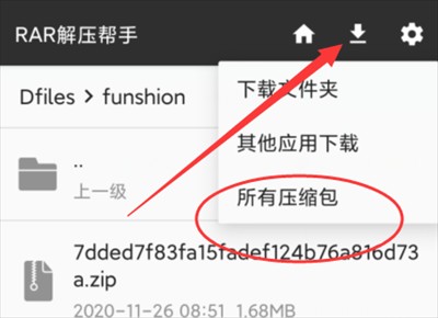 1、点击界面右上角的图标,选择“全部压缩文件”。