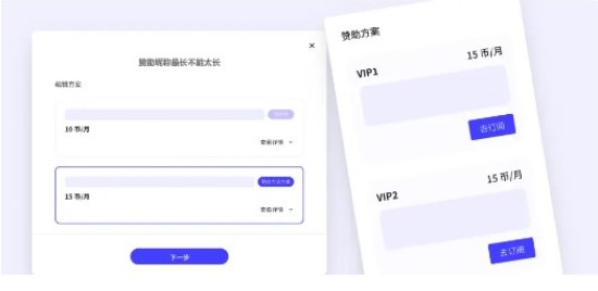 赞助等级多样,可选按月或永久,多达10个方案