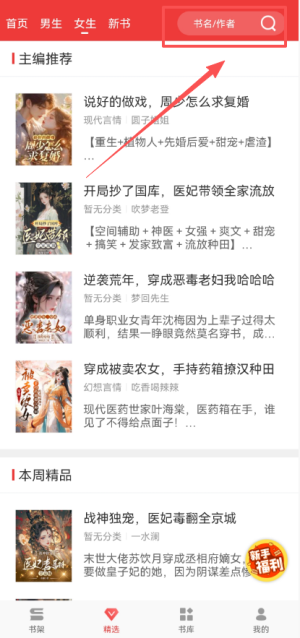 2、点击搜索框,准备输入想要查找的书籍名称,以便快速定位到你希望阅读的内容。