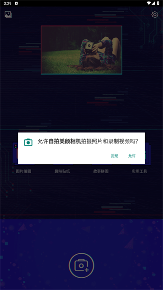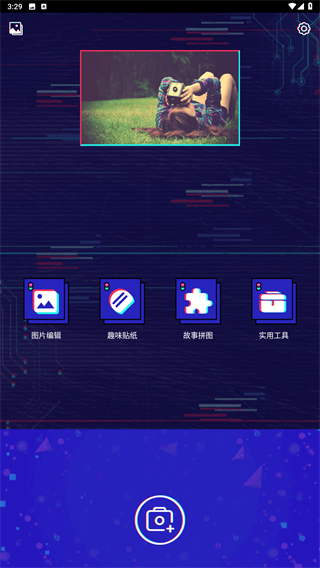 成功后,点击软件进入首页,首页配备了图片编辑、贴纸、故事拼图等实用工具。