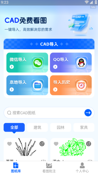 2、进入首页的图纸库,各类图纸一键即可在线成功导入,能够高效满足您的使用需求。