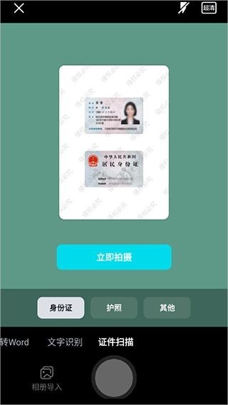 3、证件扫描功能支持快速且精准地扫描身份证、护照等各类证件。