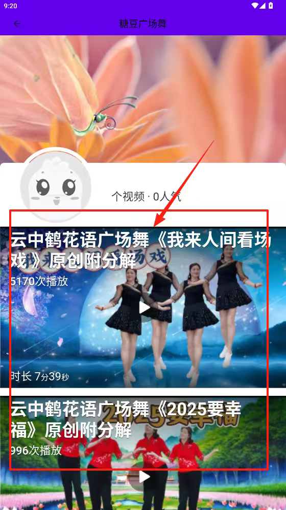 3、糖豆广场舞里,看推荐舞视频,有播放次数和时长,还能学分解。