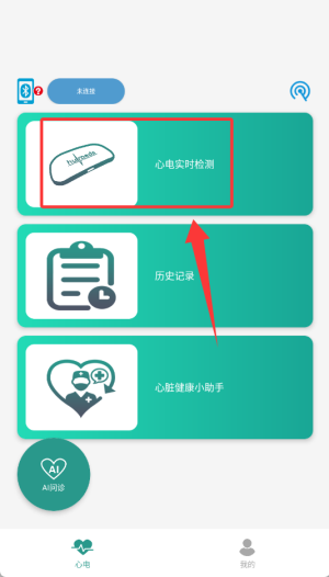 2、在设备管理界面选择对应的心电监测仪器,通过蓝牙或Wi-Fi进行配对连接。