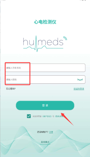 1、启动心电检测仪配套后,使用手机号验证登录个人账户,确保数据同步保存。