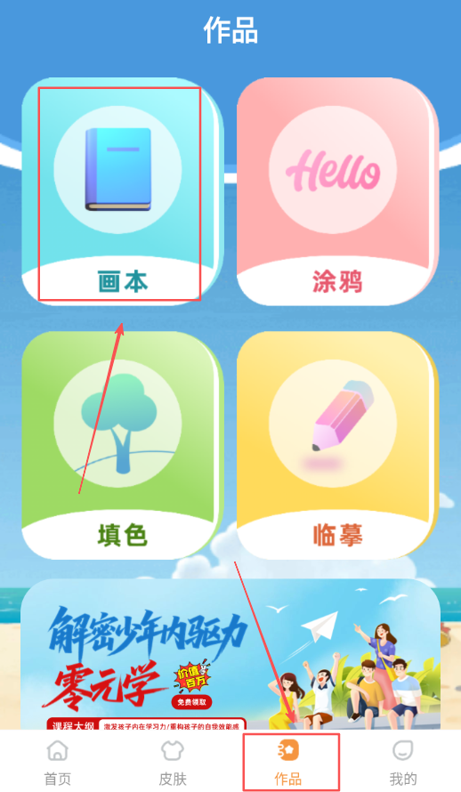 3、把画作妥善保存好后,回到软件的作品页面,在该页面里找到画本相关的选项,点击进入画本功能界面。