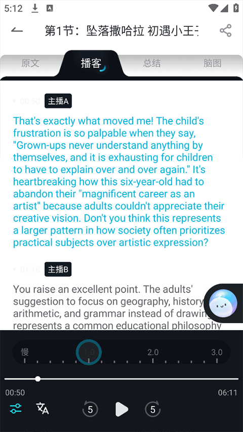 有道文档FM具备独特且实用的功能,可对用户上传的文本或文档内容进行深度整理加工。它不仅能生成趣味十足的双人对话播客,让学习过程摆脱枯燥;还能自动生成精准的总结摘要,助力用户迅速把握重点;更能绘制清晰的思维导图,帮助用户构建知识体系。借助这些功能,有道文档FM切实提升了用户的阅读与学习效率。