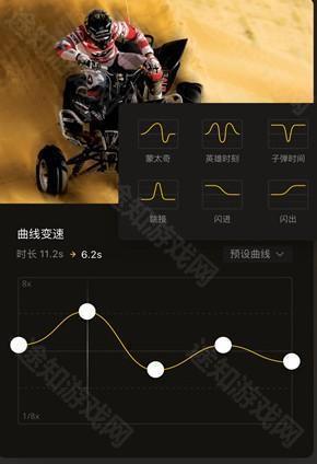3、支持曲线变速,提供6种预置曲线,可实现视频快慢交替变化。