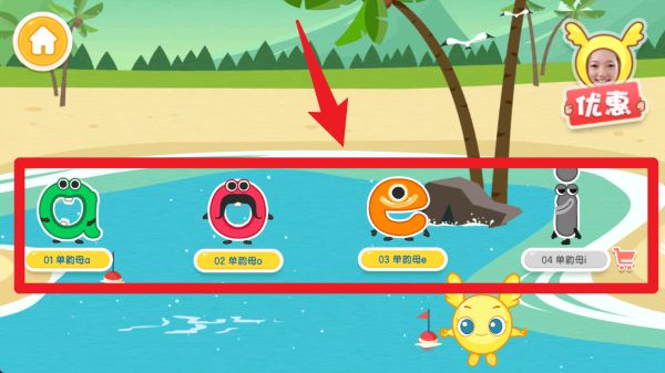 3、主页面展示多个学习主题模块,点击可进入拼音学习主界面,操作直观有趣。