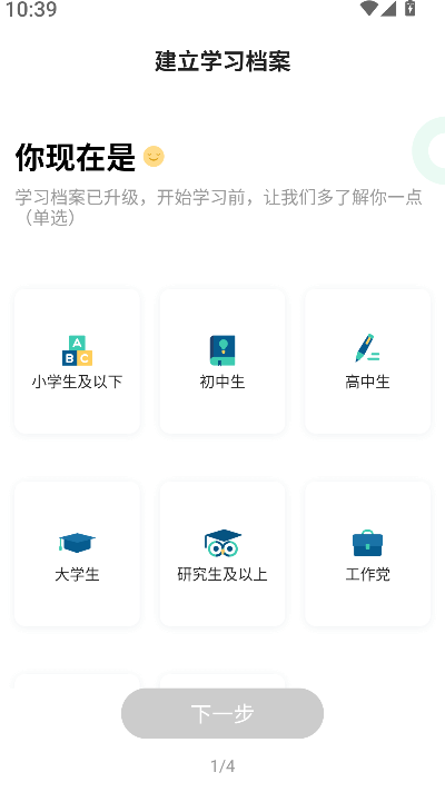 1打开软件后,先按照提示创建个人学习档案,填写基础信息和学习目标,这样系统就能规划出合适的学习内容了。