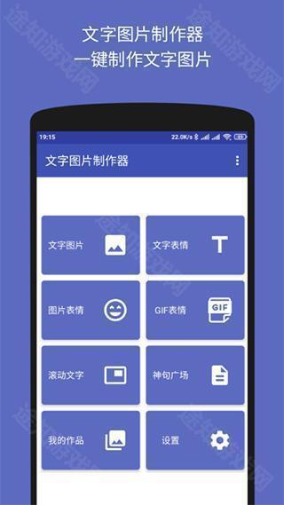 1、在本站安装文字图片制作器,运行软件,可以看到有文字图片、文字表情、图片表情、GIF表情、滚动文字等;