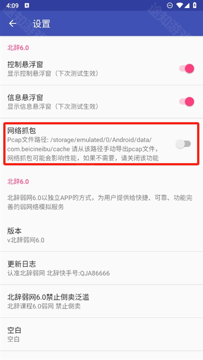 4、在这里还可以开启网络抓包功能,但是如果没有特殊的需求就不要开启该功能会影响使用的性能。