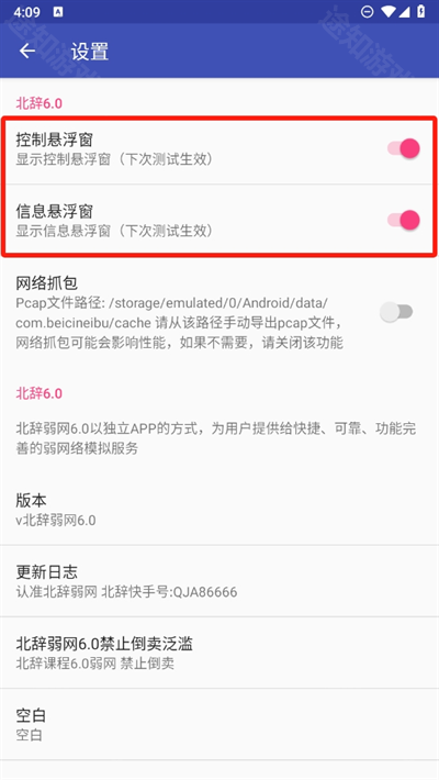 3、开启悬浮窗功能:启用控制悬浮窗,方便在测试过程中实时调整网络参数;同时开启信息悬浮窗,以获取详细的测试数据。