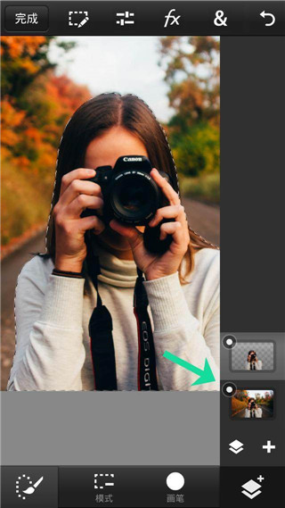 3、可通过双指缩放照片,选择合适的笔刷大小,对选区进行增加或减少操作,力求精确选取选区。