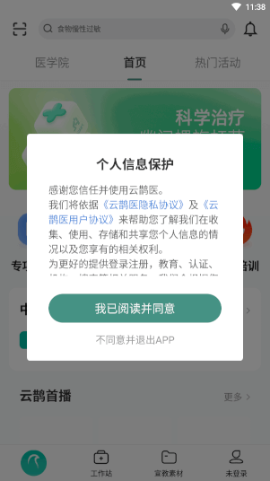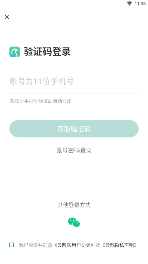1、并安装打开云鹊医,阅读协议自行选择是否同意。