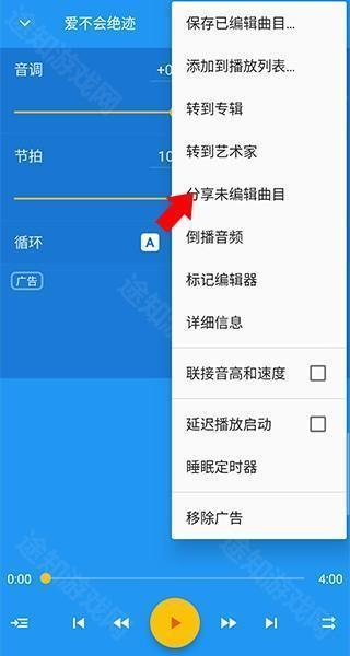 1、在本站安装并启动音乐速度变更器,然后导入你想要分享的音乐文件 2、点击界面右上角的竖排三点图标