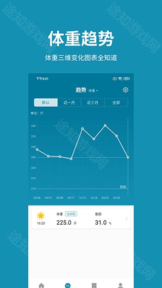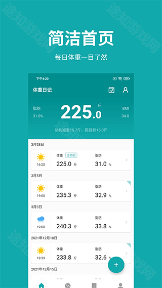 体重日记是一款实用性很强的体重记录工具,用户能随时查看自身的体重波动情况与健康状态,也可在此完成记录。软件界面设计简约,各类功能易于快速定位,即便新手也能轻松掌握,有减肥或减脂需求的用户不妨尝试使用。