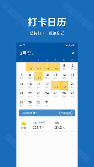 3、具备设置提醒的功能,帮助用户避免忘记记录每日体重的变化情况。