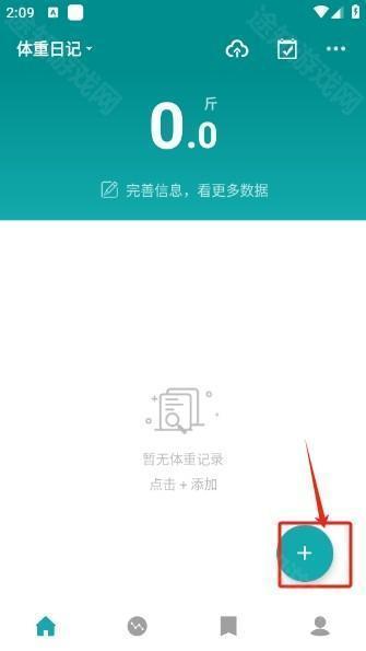 1、点击本页面体重日记,然后点击打开,点击下方的“+”号。