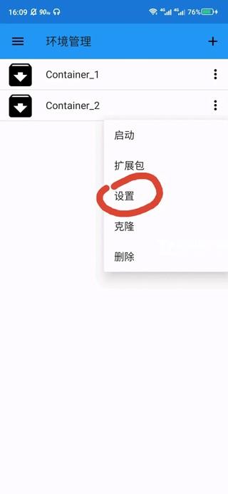 11、选择一个环境管理点击左边的三点选择设置
